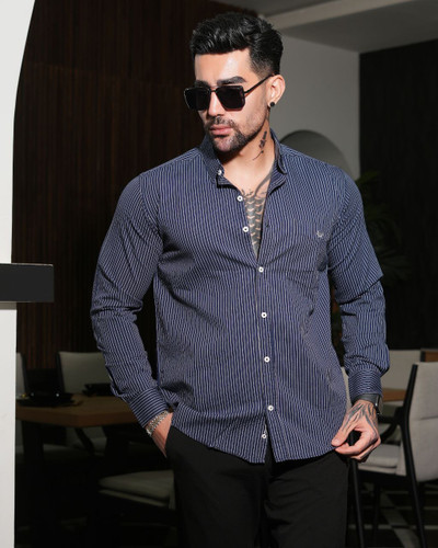پیراهن آستین بلند مردانه، راه راه، طرح دیپلمات