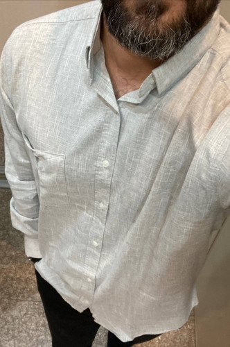 ناموجودپیراهن مردانه آستین بلند، پارچه دو نخ، سبز زیتونی