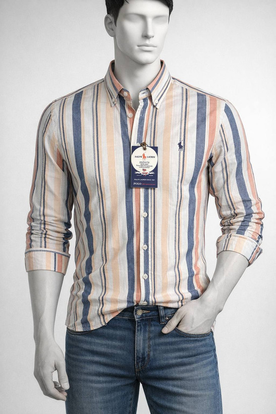 پیراهن آستین بلند تک جیب طرح راه راه نخ پنبه